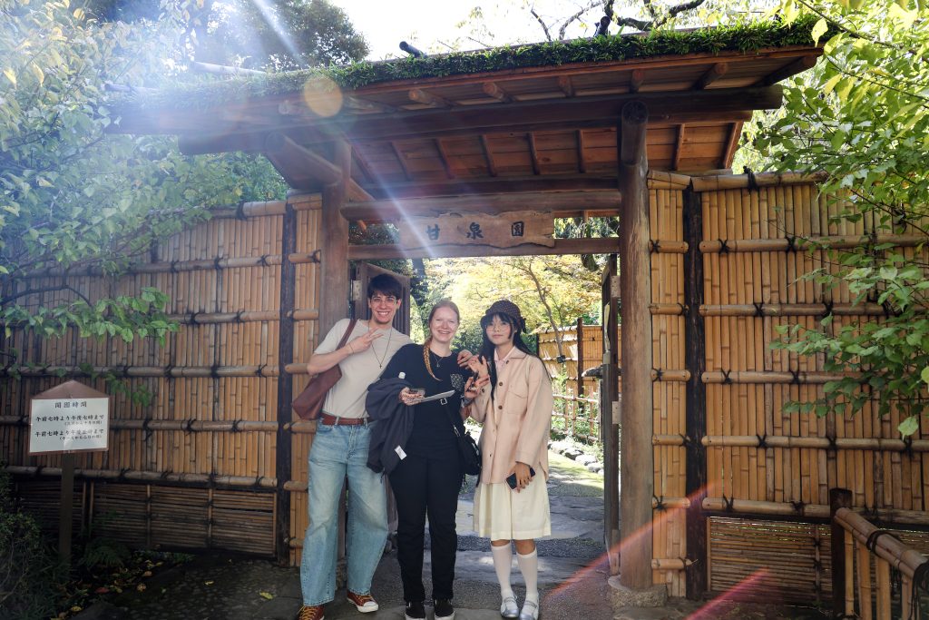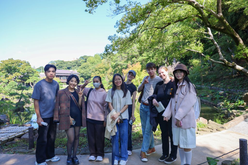 明治の風情を残す庭園を背景に、グループを跨いで束の間の会話を楽しんだ後、学生たちは再び各々のルートを巡りに行きました。