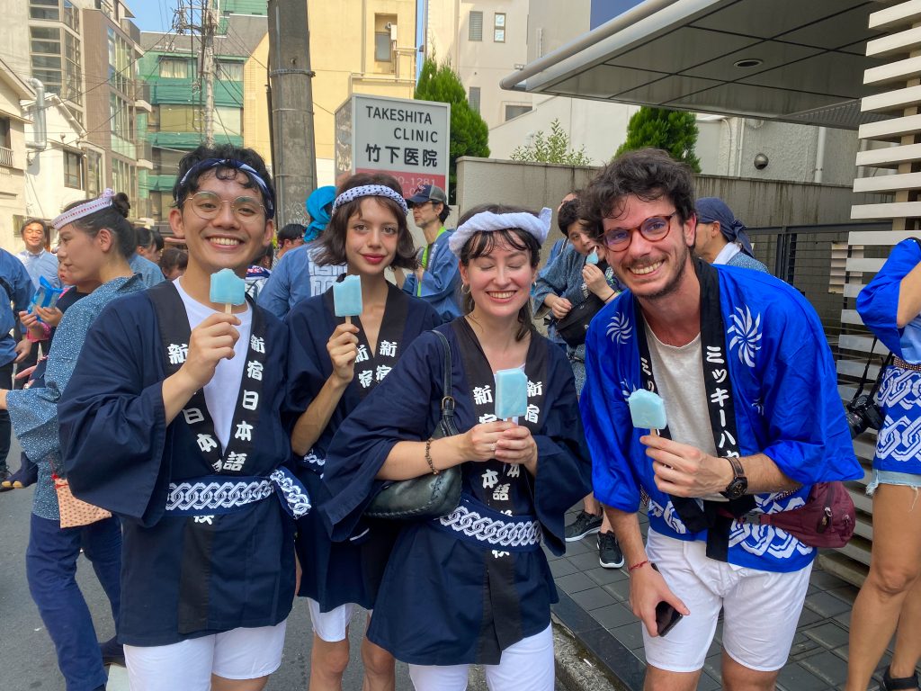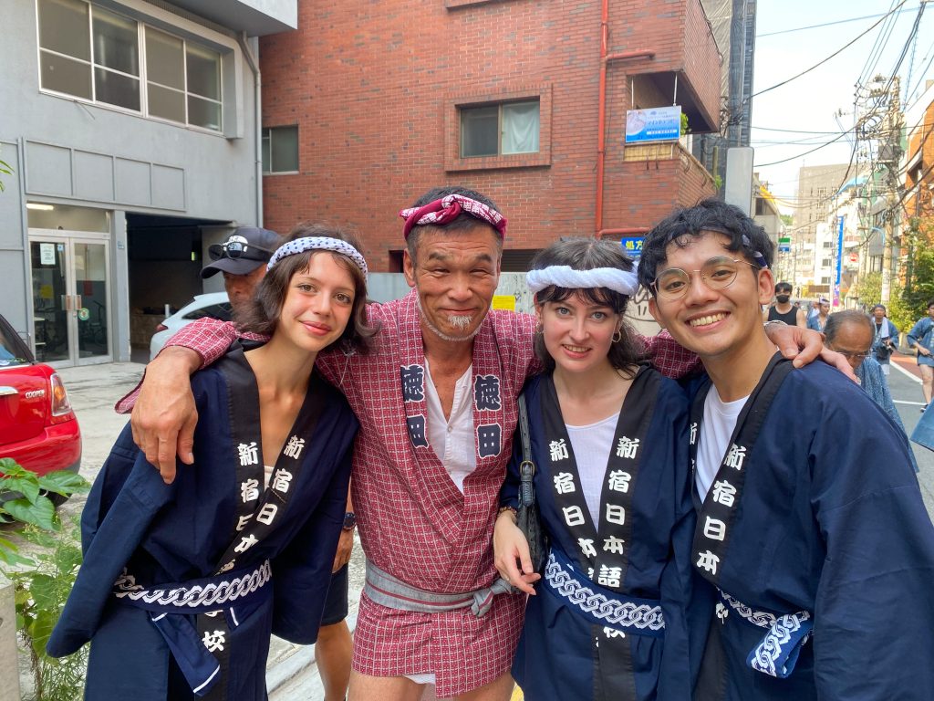 高田馬場で盛大なお神輿の行列が行われました。SNGの学生たちは地域の皆さんや町内会の方々と一緒に、この特別なイベントに参加しました。