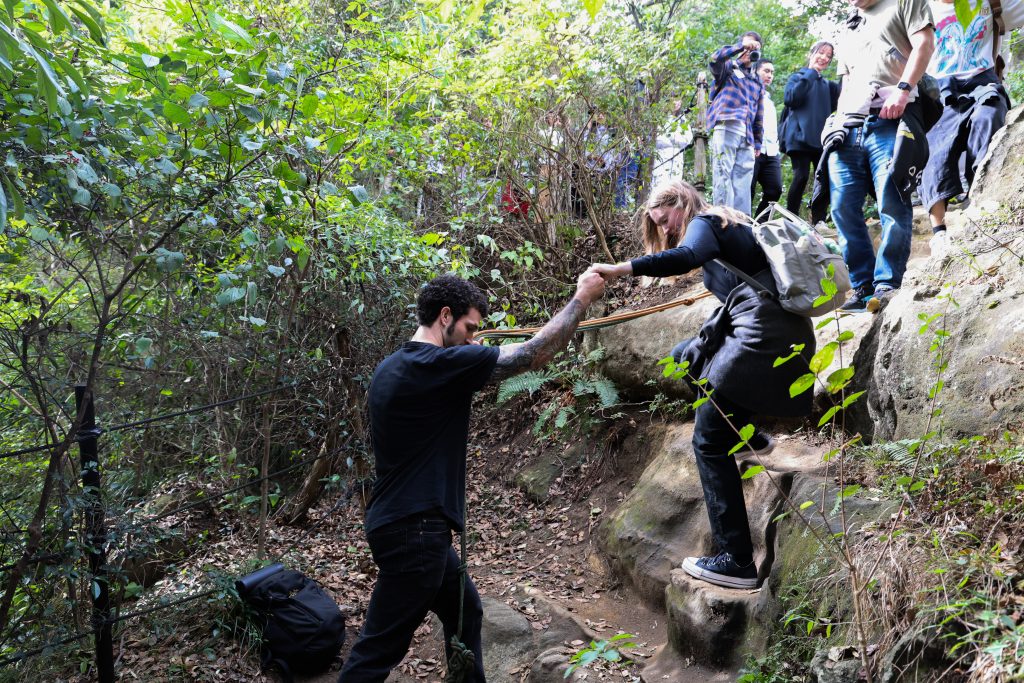 There were some steep slopes and steps along the route, but each time, students reached out to help one another—a heartwarming sight to see.