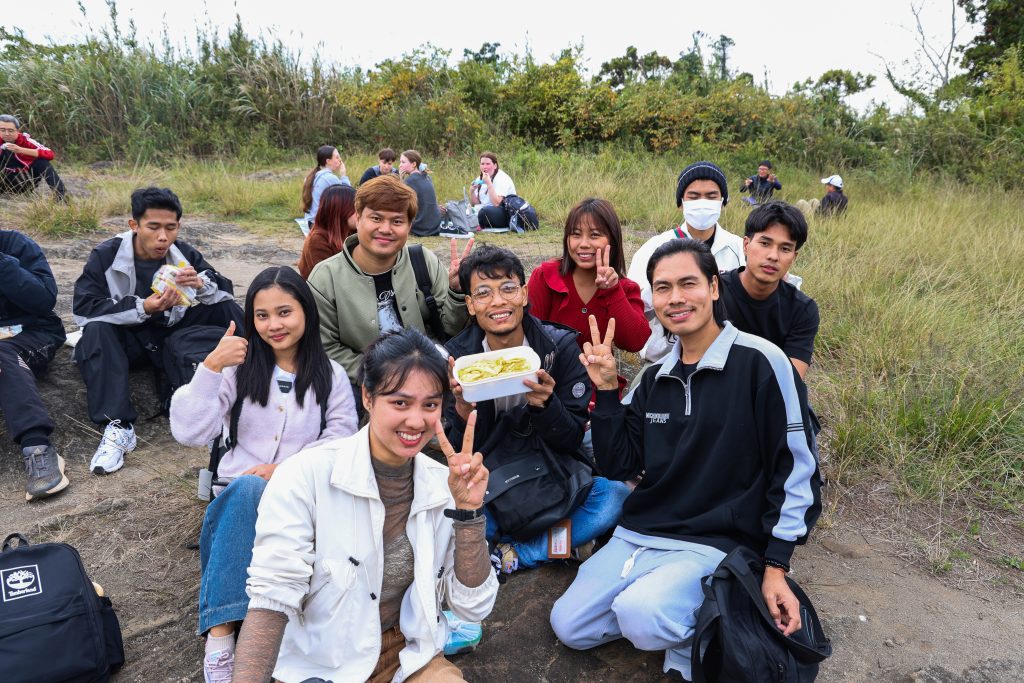 Around noon, they arrived at Ohirayama, where everyone spread out picnic mats and enjoyed lunch together. In addition to their packed lunches, some students shared homemade dishes and snacks from their home countries.