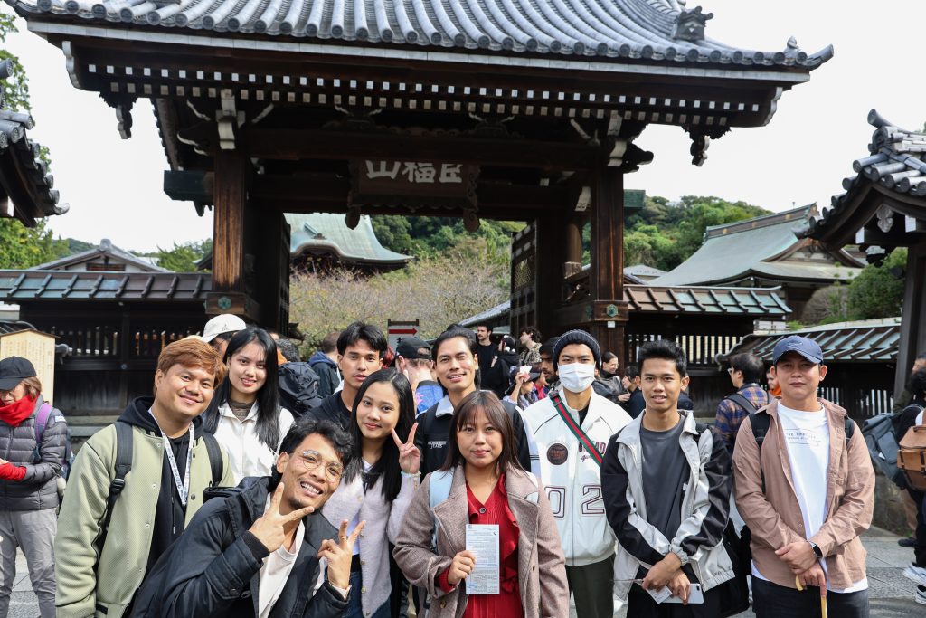 When they reached the main gate of Kenchoji, voices of admiration such as “Amazing!” and “So beautiful!” could be heard, and some students asked, “Please take a picture of us here!” Their enthusiasm to create memories against the backdrop of Japan’s historical scenery was truly impressive.