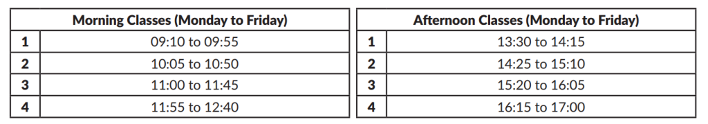 • Intermediate II – Advanced levels: Morning classes (09:10 – 12:40)